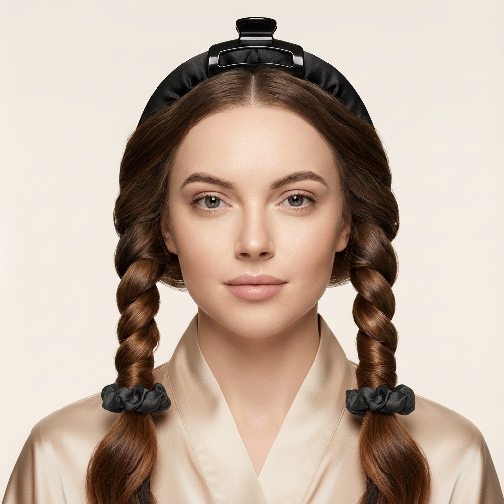 In the morning, gently remove the scrunchies and unwrap your hair from the ribbon. Do not pull — let the curls fall naturally.